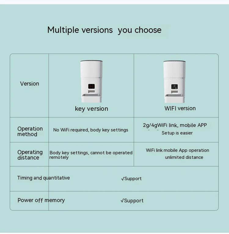 - Multiple Control Options: Choose between manual button operation, app control, or video-enabled intelligence for flexible feeding management.