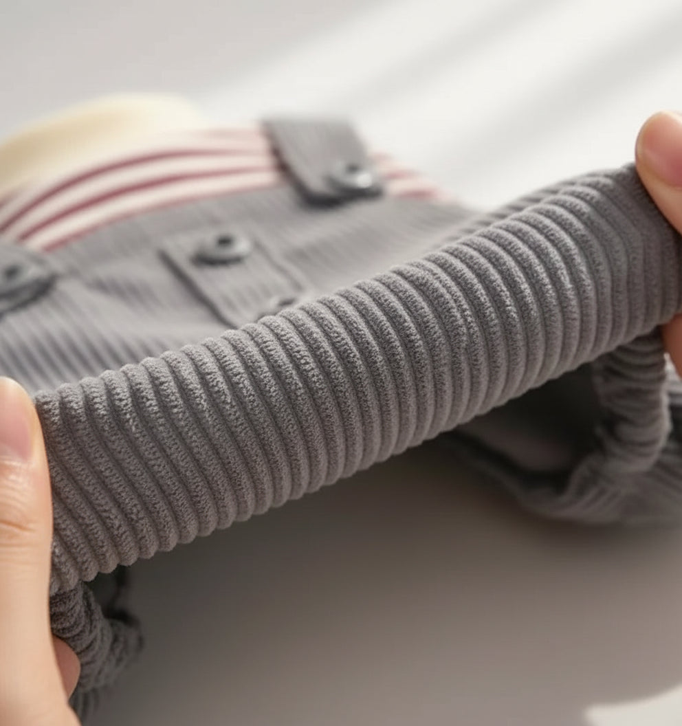 Available in two stunning color options - Khaki or Wine Red - these outfits are crafted from a luxurious blend of corduroy, striped knitted fabric, and arctic velvet, providing warmth and style. Your dog will not only feel cozy but will also turn heads during walks or playdates!